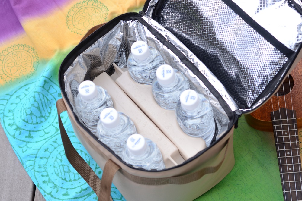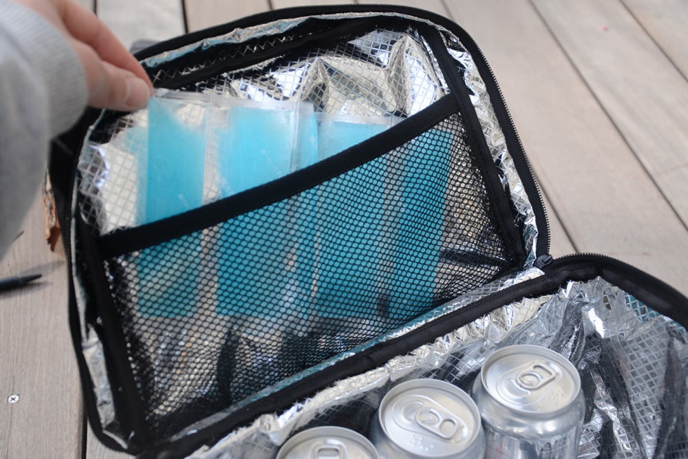 - 飲み物を保冷したアイスクーラーブロックがピッタリ収まるクーラーバッグ