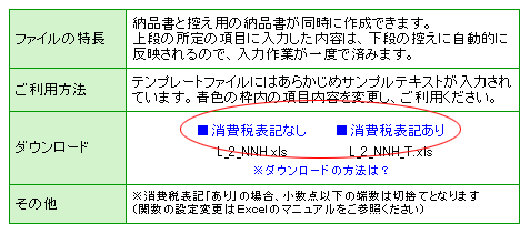 ダウンロードしたいテンプレートファイルの「消費税表記なし」又は「消費税表記あり」のいずれかをクリックします。