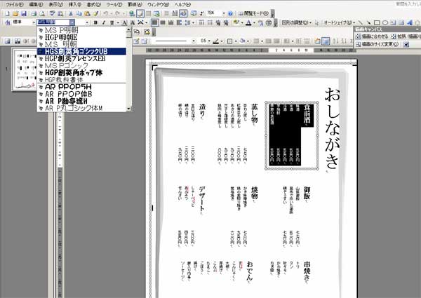 ※Word98、2000をお使いの場合、テキストボックスを作成し、テキストボックス内に画像やイラストを挿入してください。 |