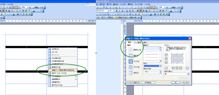 | ※word2007以降では[ページレイアウト]タブの[ページの背景]グループにある[ページ罫線]を実行。 |