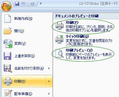 | ・「印刷プレビュー」をクリックしてください。 印刷イメージが表示されますのでご確認することをおすすめ致します。 |
