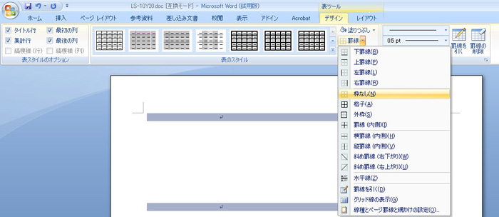 | 罫線を選択してデザインを選択して、罫線→枠なしでも出来ます。 |