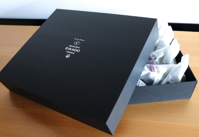 ナカバヤシ担当者ご相談を受けた際、ナカバヤシの「Vカット加工」の技術を活用し、頑丈でエッジの効いたボックスをご提案できると考えました。板紙に溝を入れ一回の工程で組み立てまで行う方法を用いることで、材料の無駄が少なくクオリティも非常に高く仕上がります。様々なシーンでご利用いただける黒色のパッケージに銀箔でEIKADOロゴを箔押し加工し、上質なイメージに仕上げました。
