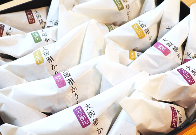 受け継いだ製法と進化する技術を掛け合わせ、人々に「おいしい!」と笑顔になっていただけるよう、品質にこだわった商品を作り続けます。看板商品「大阪華かりん」